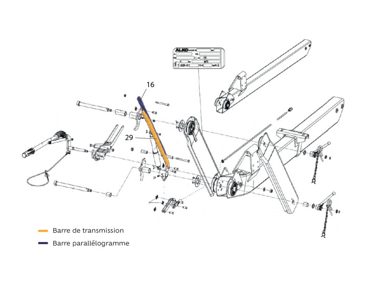 Barres paralélogrammes ou barres de transmissions pour timon OPTIMA AL-KO