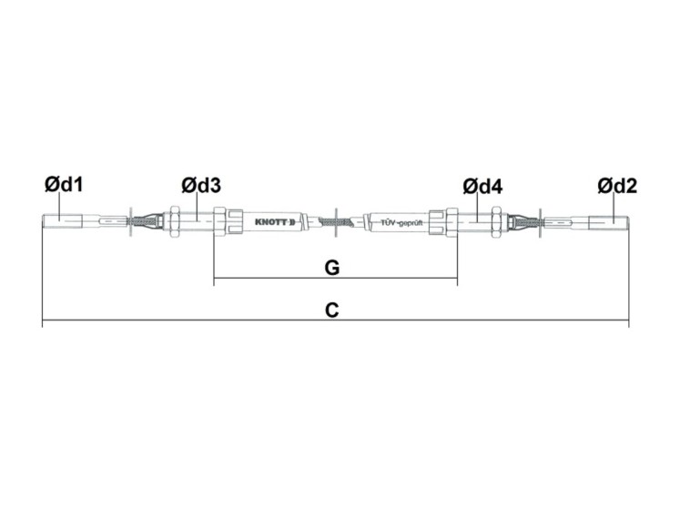 K-980023.05 | Câble de timon | 1400 | 1770 | 10 | 10 | 16 | 16 | KNOTT KR/KV13-20HV |