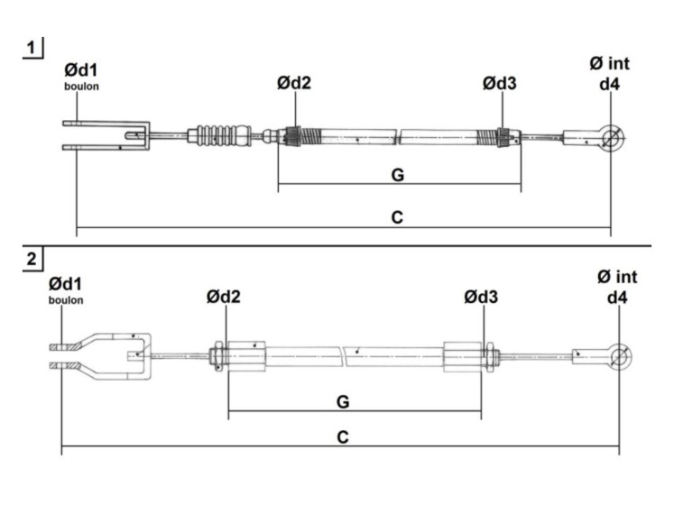 | Prix TTC | Stock | Fabricant | Référence | Modèle | Produit | G | C | Ø d1 | Ø d2 | Ø d3 | Ø d4 | Ø câble | Sur attache | ||||