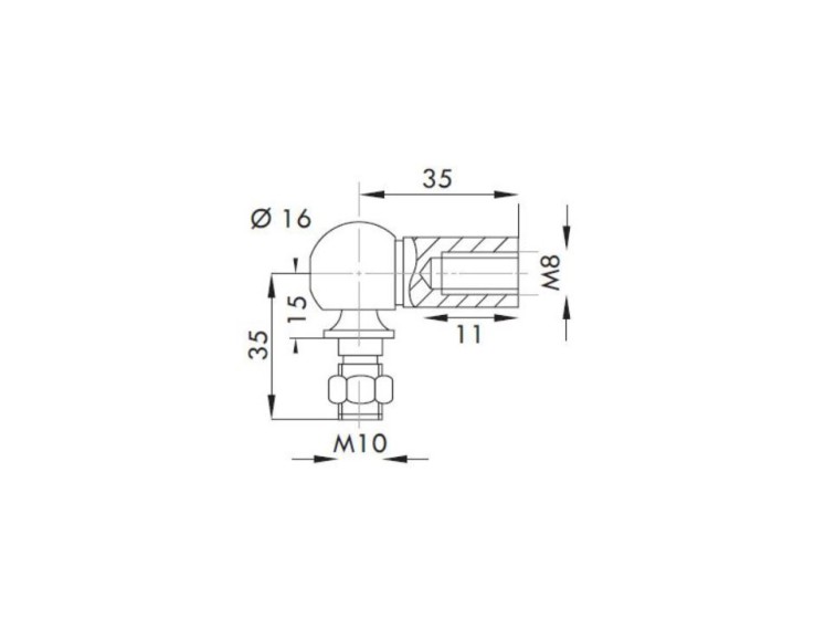 Cage à rotule acier Ø16 avec rotule M8-M10